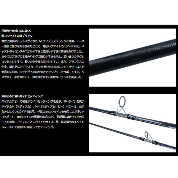 マルチルアーキャスティングロッドのオーバーゼアに、ハイパワーシリーズが登場した。その名はグランデ(偉大・大きい)。大型のプラグや重いメタルジグを沖まで飛ばす遠投性、トップウォータープラグやジグを自在にコントロールする操作性、大物を浮かせる強靭性を兼ね備えたショアジギング&ショアプラギングモデル。そのターゲットはサバやタチウオなどから、根魚、サワラやシイラ、ブリ、ヒラマサ……。軽さと強靭なパワーを武器に、堤防や磯からディープブルーの水平線を狙い撃つ。99H 潮流の速いエリアや水深のあるエリアで多用される100gクラスのジグをメインとしたジギングモデル。レングスも短めにすることで操作性を重視。ブリやメーター越えのシイラ、小型のヒラマサに最適。