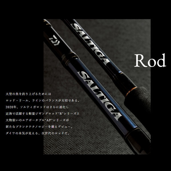 BRAKE YOUR RECORD/SALTIGA C(キャスティング)は安定した飛距離、ルアーの操作性、ファイト時の魚のコントロール、そして破壊強度といったオフショアキャスティングロッドに必要とされる当たり前ともいうべき性能に磨きをかけたモデル。その源となるのが言うまでも無くブランク性能である。メイン素材は高強度で強い粘りをもつHVFナノプラス、そして先端からX45を最外層に纏ったX45フルシールド搭載によりネジレ剛性を大幅にアップさせた。また比較的強度の落ちやすいバットジョイント部はダイワ最先端のジョイント構造であるVジョイントαを採用。これらのテクノロジーをベースにしたブランクに、個々のアイテム特性を突き詰めることで、大幅な進化を遂げたSALTIGA Cで是非記録となる1本をキャッチして欲しい。 84-2.5 PE1.5~2号で40gクラスのヘビーシンキングミノーの早引き、シンペンなどで狙うサワラやカツオに最適なモデル。8.4ftのロングレングスはオーバーヘッドキャストでナブラや跳ねを直撃出来る。そして小型ルアーでも遠投できるバランスにしているので、ノーマルサイズのルアーでは厳しい時に重宝するモデル。
