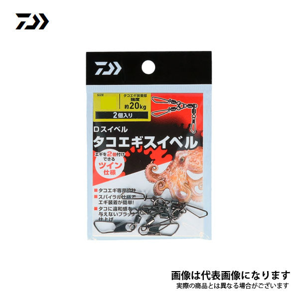 船のタコエギ釣りはエギの2個付けが定着しました。エギやスッテを2個付けしても絡まず、大ダコにも負けない強度のスイベルです。スパイラル仕様でエギの装着や取り外しが簡単に行えます。シンカー取り付け部はセイフティスナップでラインが絡むトラブルもありません。エギを装着するスパイラル部は十分な強度があるので大ダコでも安心してやりとりできます。タコに違和感を与えないブラック仕上げです。