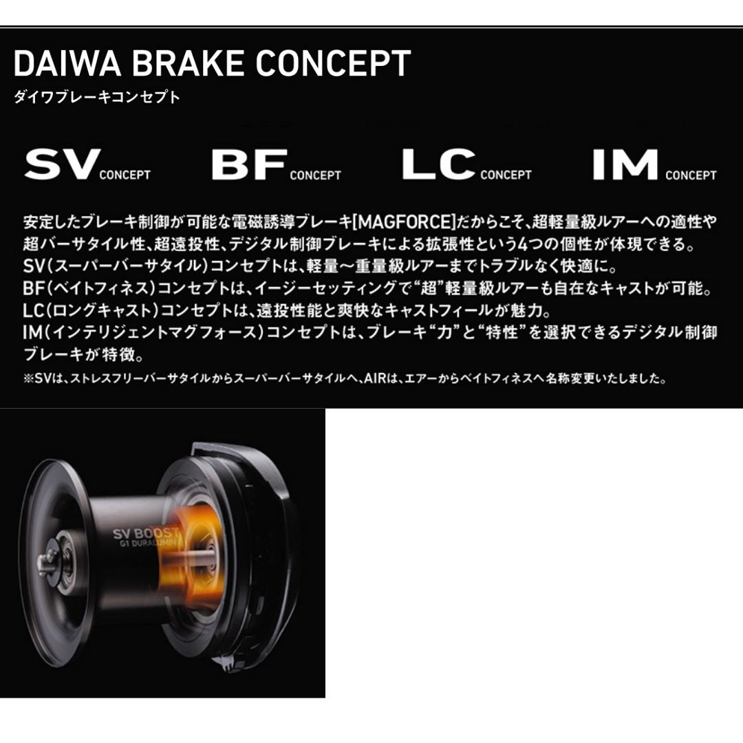 スプールはφ34mm G1ジュラルミン製 SV BOOSTを搭載。力まずキャストし飛距離を出すことができる性能を実現した。キャスト時に空気抵抗を感じる巻きモノルアーですら、SVコンセプトならではの低弾道かつ正確なアプローチを可能とする。さらにBOOST SYSTEMを搭載することで後半の伸びも実現。中・近距離だけでなく遠投域まで、巻きスタイルを徹底サポートする。タイニークランクや1/4ozスピナーベイトクラス等、巻きスタイルの中でも比較的引き抵抗の軽いルアーやシャロー攻略をメインにベストパフォーマンスを発揮。ギア比は5.3(ハンドル一回転56cm)と6.3(ハンドル一回転67cm)の2種展開。