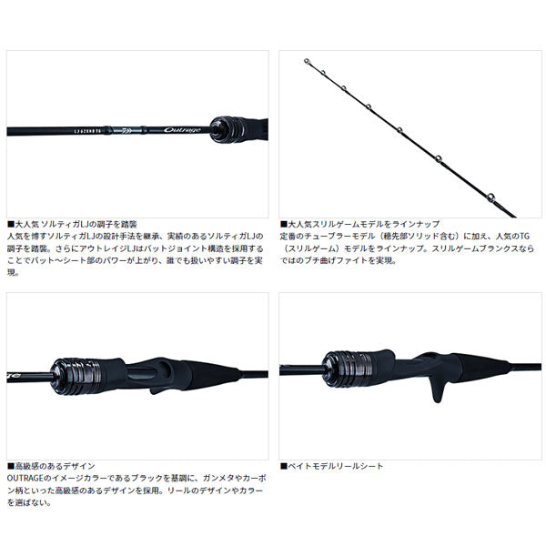 SALTIGAの設計思想を引き継いたハイスタンダードライトジギングロッド 青物とのパワーファイトを実現 X45 大人気ブチ曲げファイト メガトップ芯材スリルゲーム(TG、穂先ソリッドモデルのみ) 軽量・高感度・手当たりの良さを追求したエアセンサーシート(スピニングモデルのみ) 軽量性とパワーの融合 HVFナノプラス 理想的な調子を実現するバットジョイント構造