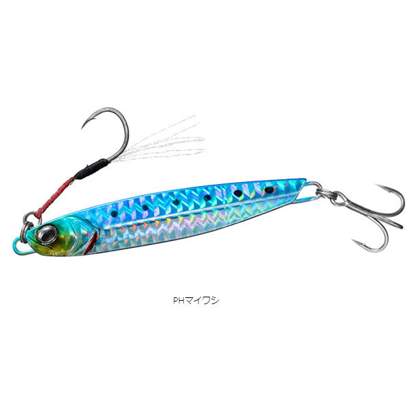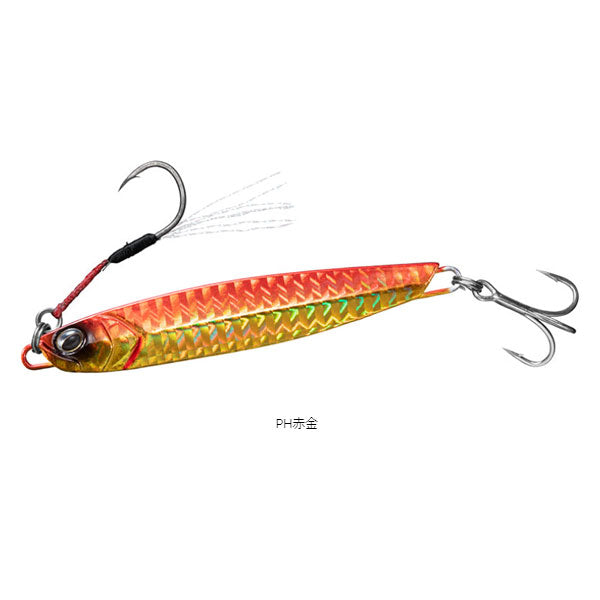 釣獲力がアップしてリニューアル!さらに飛ぶ!大物対応!絡まない!これからのジグのスタンダード。 ショアジギングの人気沸騰により、ますます混戦の堤防。激戦区で釣り勝つためのメタルジグをとことん突き詰めたのがこのサムライジグRだ。重心バランスを見直すことで、旧タイプ(サムライジグ)よりもさらなる飛距離を獲得。向かい風や横風のなかでも安定した飛距離を獲得する。また、それにより水流抵抗も最適化され、ラインがフックに絡むテーリング(エビり)などのトラブルの軽減にも成功したうえ、ハイピッチやスローピッチなどの応答性がよくなり、アクションの幅も拡大している。また、フックも大きく見直しをかけている。フロントには滑りが良くなるフッ素コートでサクッと絡めとるように刺さるサクサスフックのティンセルアシストフックを採用。ショート化したことで、刺さりのレスポンスと絡みにくさを向上させている。リアフックは、さらなる大物にも耐えうる太軸のトレブルフックを搭載。大物志向が続くショアジギングにおいて、非常に心強い装備だ。釣獲力と快適性に磨きがかかった新生サムライジグRがここに誕生!