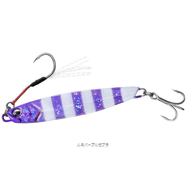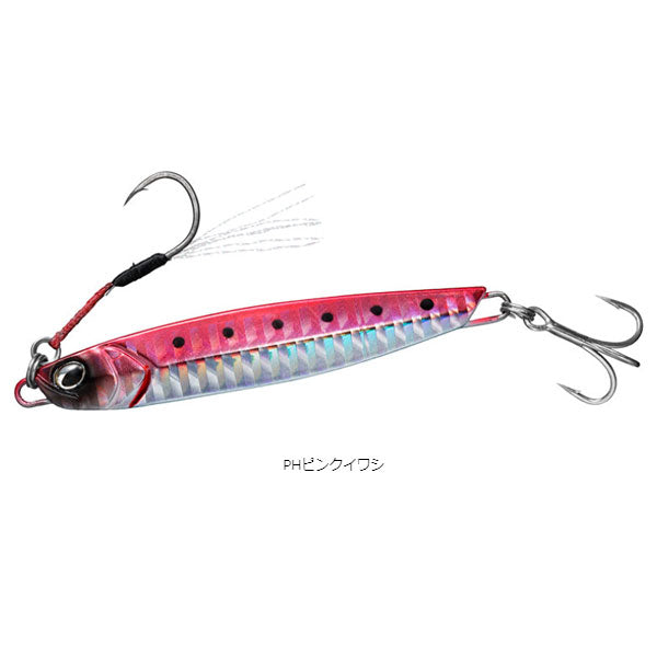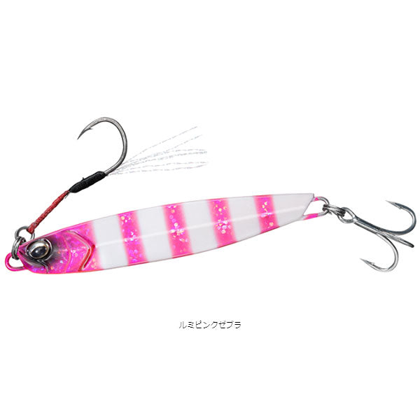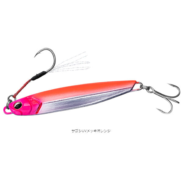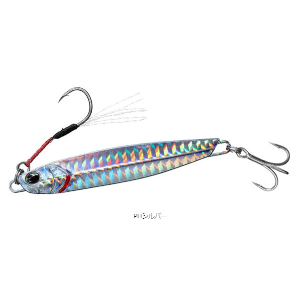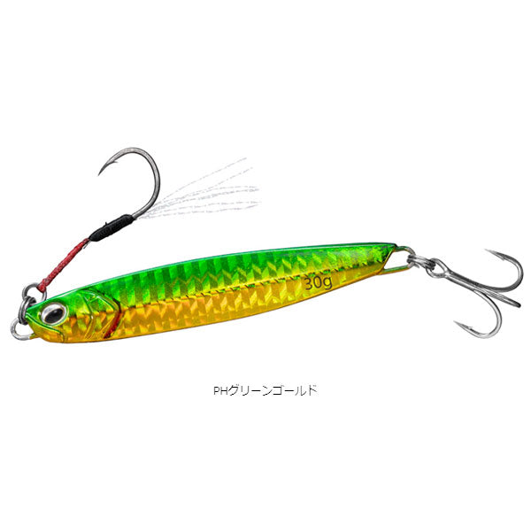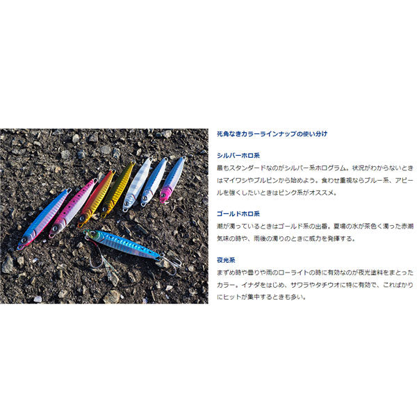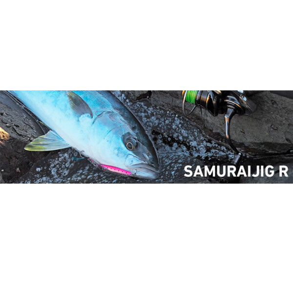 釣獲力がアップしてリニューアル!さらに飛ぶ!大物対応!絡まない!これからのジグのスタンダード。 ショアジギングの人気沸騰により、ますます混戦の堤防。激戦区で釣り勝つためのメタルジグをとことん突き詰めたのがこのサムライジグRだ。重心バランスを見直すことで、旧タイプ(サムライジグ)よりもさらなる飛距離を獲得。向かい風や横風のなかでも安定した飛距離を獲得する。また、それにより水流抵抗も最適化され、ラインがフックに絡むテーリング(エビり)などのトラブルの軽減にも成功したうえ、ハイピッチやスローピッチなどの応答性がよくなり、アクションの幅も拡大している。また、フックも大きく見直しをかけている。フロントには滑りが良くなるフッ素コートでサクッと絡めとるように刺さるサクサスフックのティンセルアシストフックを採用。ショート化したことで、刺さりのレスポンスと絡みにくさを向上させている。リアフックは、さらなる大物にも耐えうる太軸のトレブルフックを搭載。大物志向が続くショアジギングにおいて、非常に心強い装備だ。釣獲力と快適性に磨きがかかった新生サムライジグRがここに誕生!