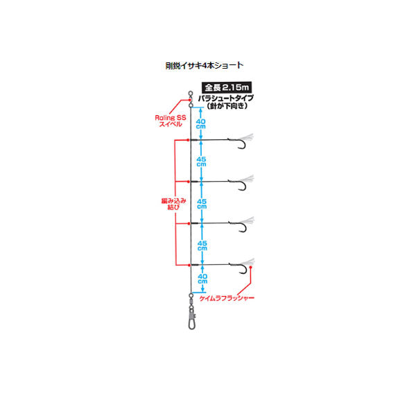 快適落とし込み仕掛けSS LBG剛鋭イサキ4本ショート