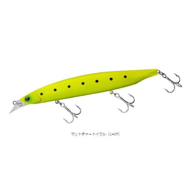 140S タイプ スローシンキング サイズ(mm)140 標準自重(g)28.5 有効レンジ(cm)約50~140 アクション タイトウォブンロール 飛距離(m)Max:87.5 Ave:85.5(当社テスト) 標準装備フック #4トレブル リング#3 ※Sは赤目仕様