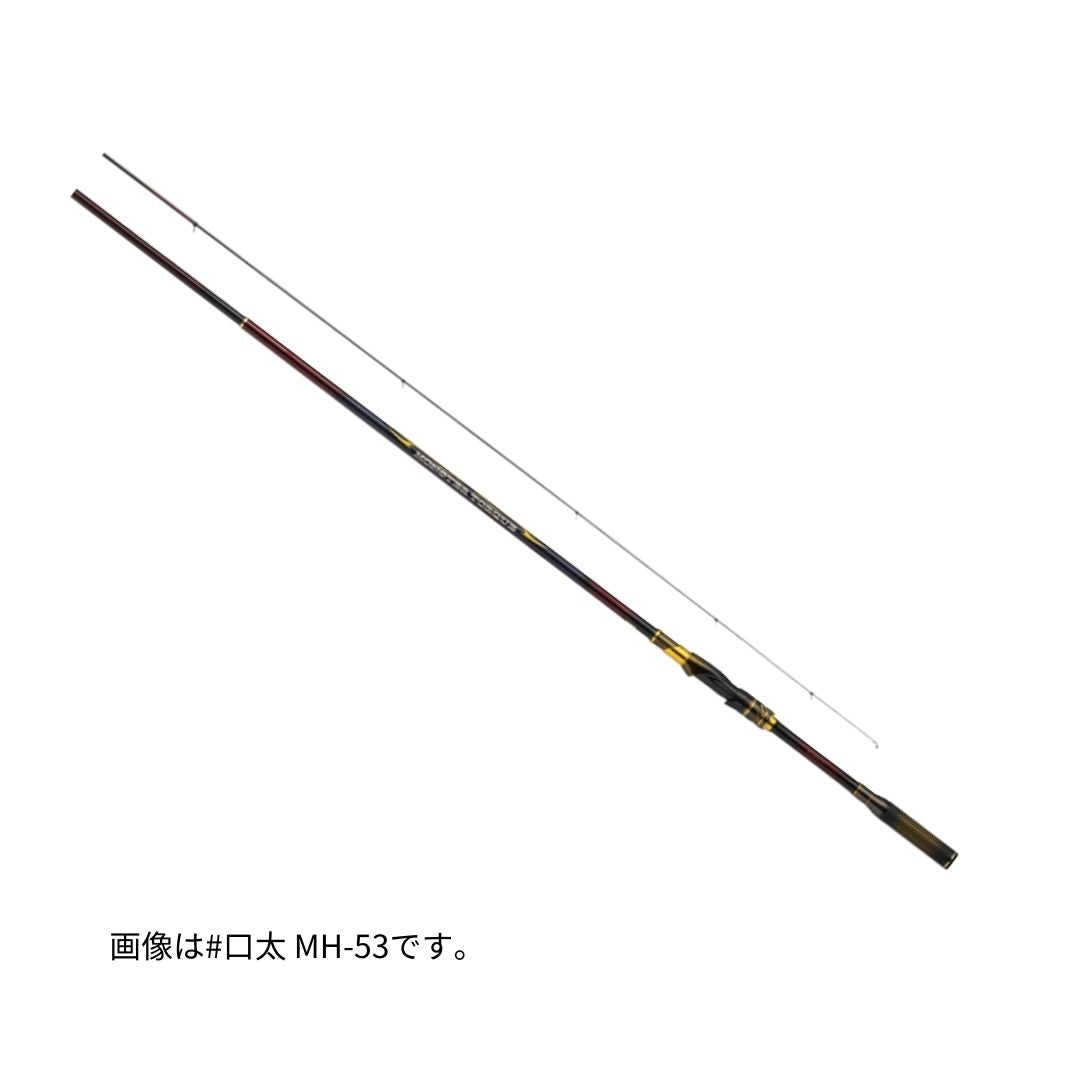 【口太MH-53】 全長(m):5.3 継数:5 仕舞寸法(cm):115 標準自重(g):232 先径/元径(mm):0.75/24.9 錘負荷(号):1.5-4 適合道糸 ナイロン(号):1.2-4 カーボン含有率(%):98 JAN:4550133341199
