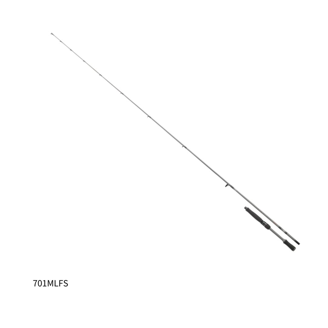 【701MLFS】ダウンショットスペシャリティ。沖の水中のストラクチャー回りやフラットをダウンショットで狙うモデルだが、素直に曲がり込むテーパーは、ノーシンカーから軽量プラグまで、幅広いリグに対応。レングスを活かした遠投力も魅力的なモデルに仕上がっている。