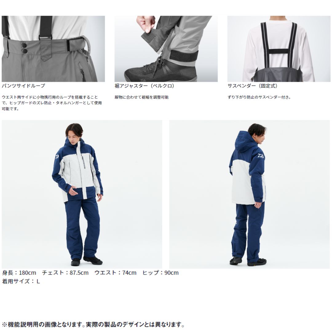 防寒中綿を大盛りに詰め込んだスーツ。衣服内の蒸れを外部に放出し、雨風を防ぐレインギアなどのために開発された快適高機能素材。