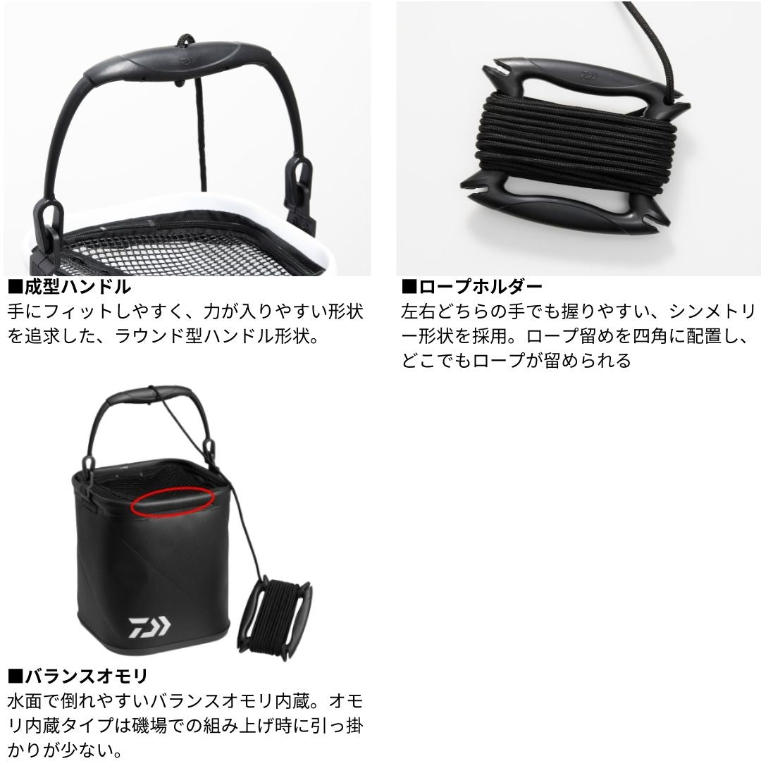 水を汲む際にバケツが水面で倒れやすいバランスオモリ内蔵。