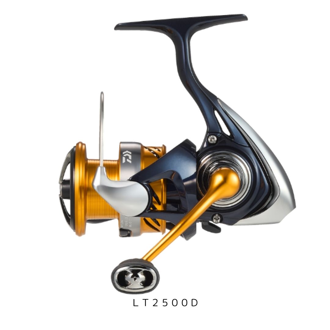 ギア比や巻糸量、ハンドルで選べる2アイテム。LT2500Dはギア比5.3、ハンドル1回転75㎝、ナイロン12lb(3号)150m巻でエサ釣りにも対応。