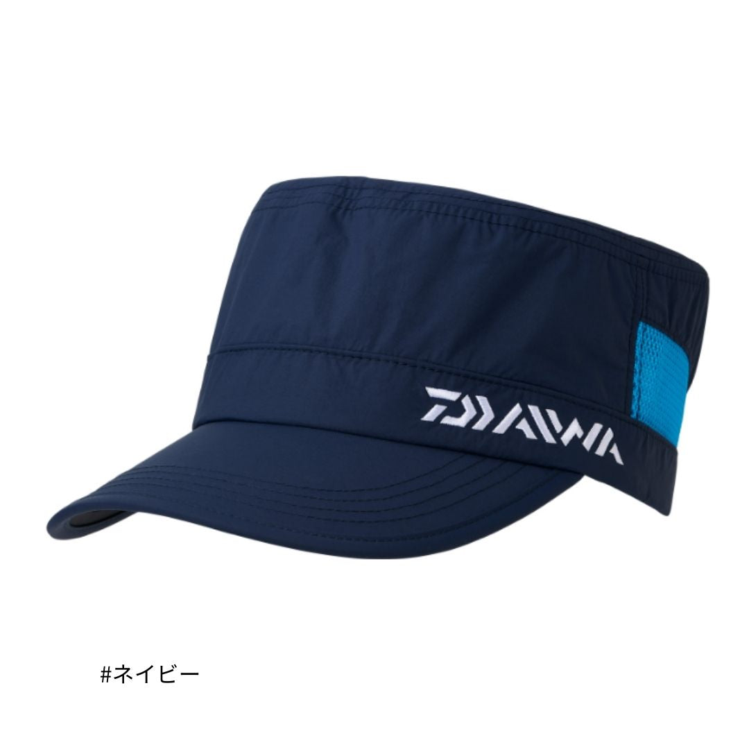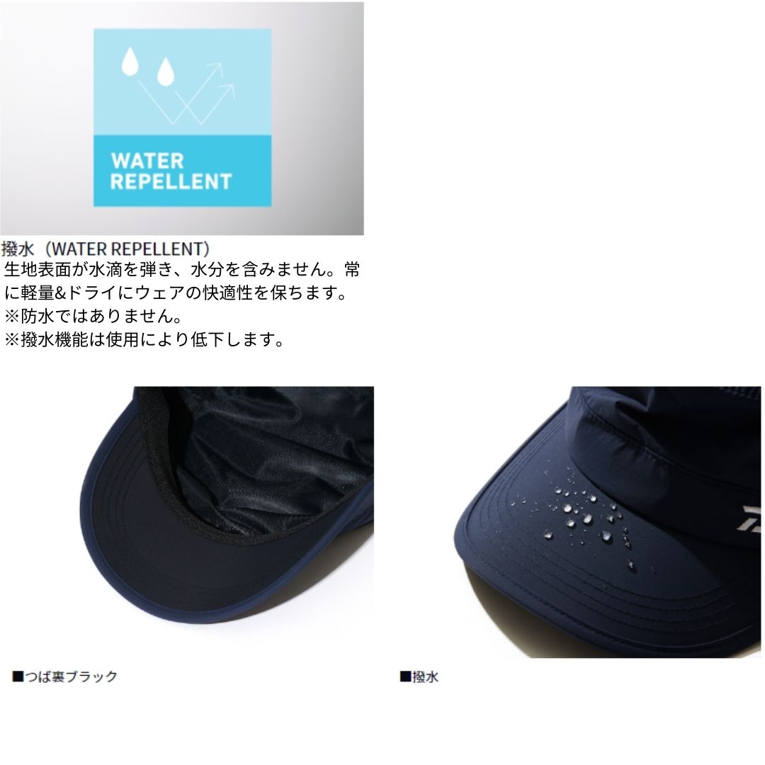 つば、フロント部分に撥水素材を使用したワークキャップ。サイドや後ろにメッシュを配し、適度な通気性を確保。つば裏をブラックにすることで水面からの光の照り返しを抑える。