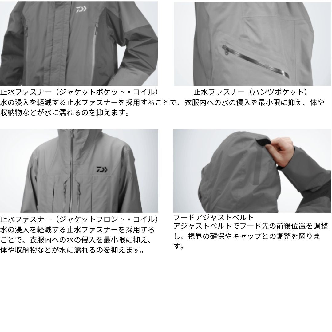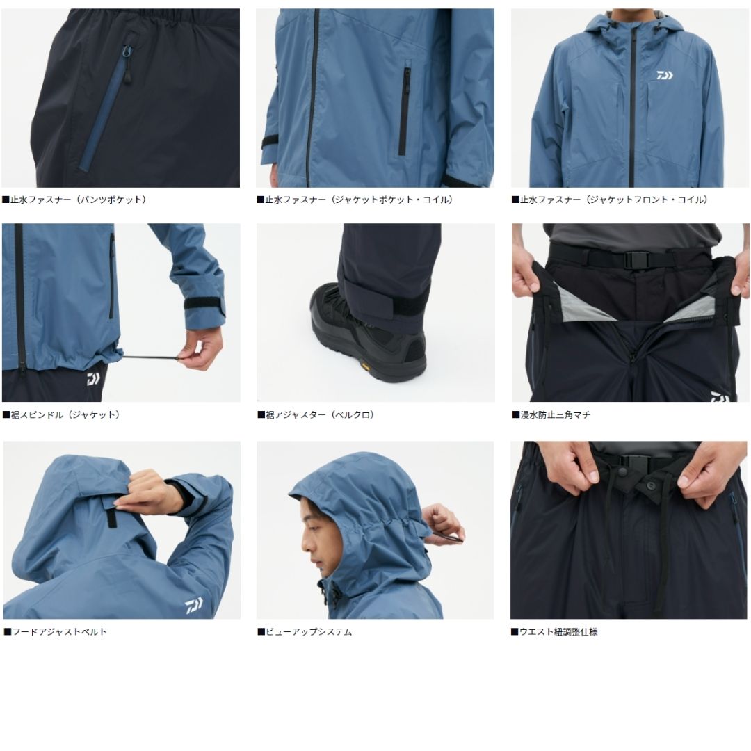 高い撥水性能を持ち、撥水性が持続するため、透湿性能を保ちやすく、快適に着用可能。生地は格子状のリップストップ生地により、耐久性をUP。生地裏のプリントは肌離れしやすいよう凹凸のあるものを採用。薄手の2.5層生地なため、軽量でコンパクトに持ち運び可能。止水ファスナーの胸ポケットはウエストタイプのライフジャケットを着用していても使用しやすい構造。生地の防水膜には劣化しにくいポリカーボネイトを採用することで、1着のウェアを長く着用することが可能。スリムシルエットで動きやすいレインウェア。
