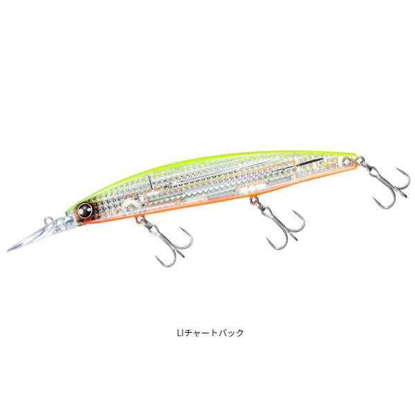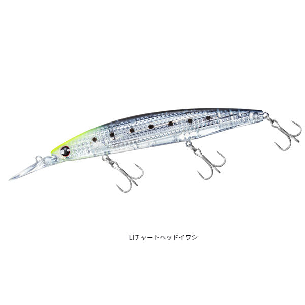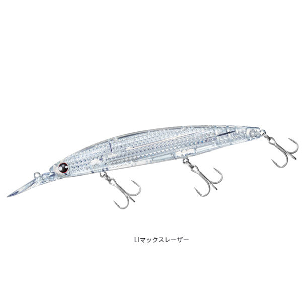ぶっ飛びサーチシンキングダイバー「セットアッパー125S-DR」にレーザーインパクト搭載モデルが登場! 小沼正弥監修モデル 堤防、磯等における中層と足元を攻められるぶっ飛びサーチシンキングダイバー「セットアッパー125SDR」にレーザーインパクト搭載モデルが登場!「この輝きには釣れる理論(ワケ)がある。」レーザーインパクト(PAT.P)搭載 レーザーインパクトは、3Dマルチ反射構造により「イワシ」等と同様の高輝度反射光を多方向に放ち、「本物の誘いを遠くまで」を実現。更に、泳いでいる時の反射光の明滅まで再現!夜間や日陰のわずかな光でもベイトフィッシュと同様、昼夜・場所を問わず光でターゲットにアピール!飛距離と潜行性能を両立したエアロリップにより、ロングリップミノーとは思えない爽快なキャスタビリティと、Max2mOVERの潜行性能を実現。キャスタビリティ、レンジキープ性能を追求したスローシンキング設定ながら、多用するスロー~ミディアムでのレスポンスを徹底追及。小沼氏の卓越した経験とフィールドテストを繰り返した末にたどり着いた、こだわりの「釣れるハイピッチタイトウォブンロールアクション」設定。「タダ巻きのスローリトリーブ」でもしっかりした引き心地と強烈なフラッシング&波動を発生。また、流れの変化で自動的に生まれるイレギュラースライドアクションが、「食わせの間」を与えるため特別なロッドアクションの入力は不要。低活性でシビアなシーバスのキスバイト(口先でつつくようなバイト)にも対応する、こだわりの#6サイズ×3本フックシステム採用。Max82.5m!ぶっ飛び「サイレントウエイトオシレートシステム」搭載。
