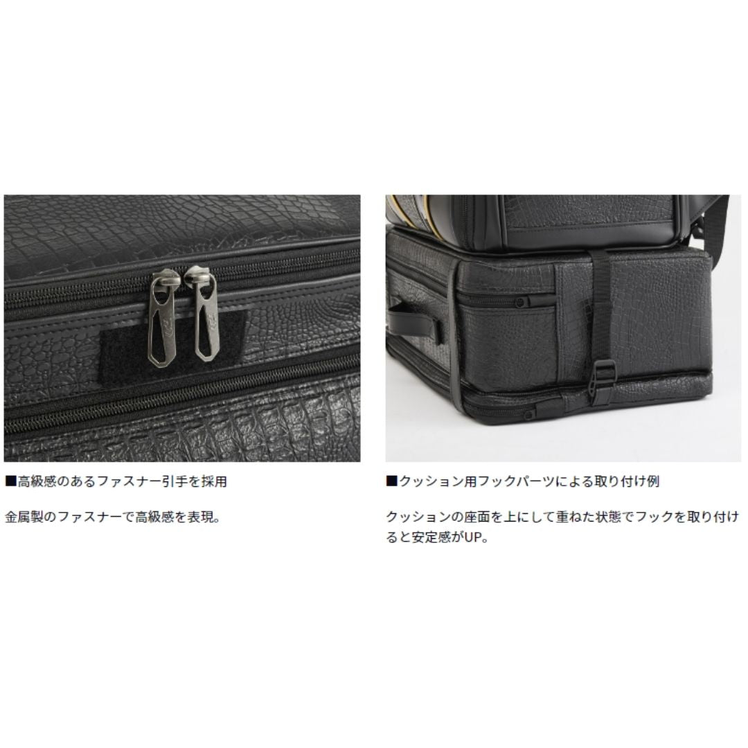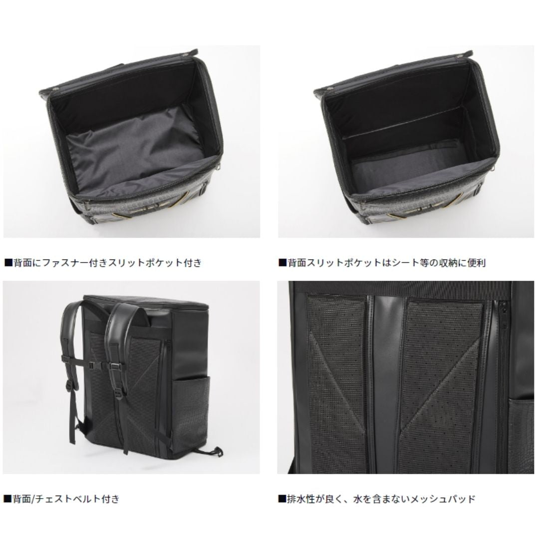 本体両サイドに形状の違うポケットを配置し、クッション性の良いショルダーパッド、排水性の良い立体メッシュパッド(背面)、シート等の小物の収納に便利な背面スリットポケット付き。