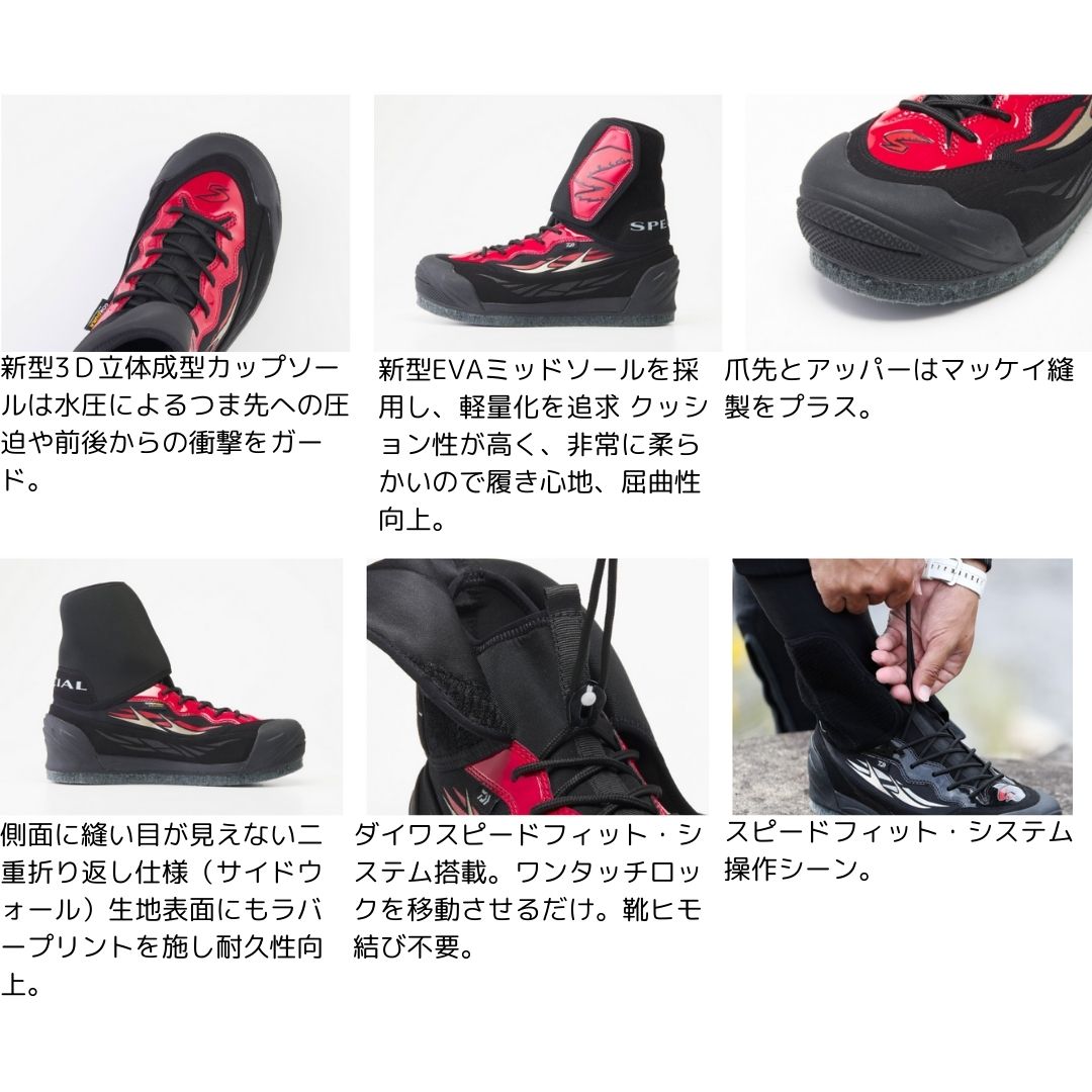 ダイワスピードフィット・システムを採用し、ワンタッチロックを移動させるだけで靴ヒモ結び不要な仕様(※ヒモとワンタッチロックのパーツがプラスで付属されています。)