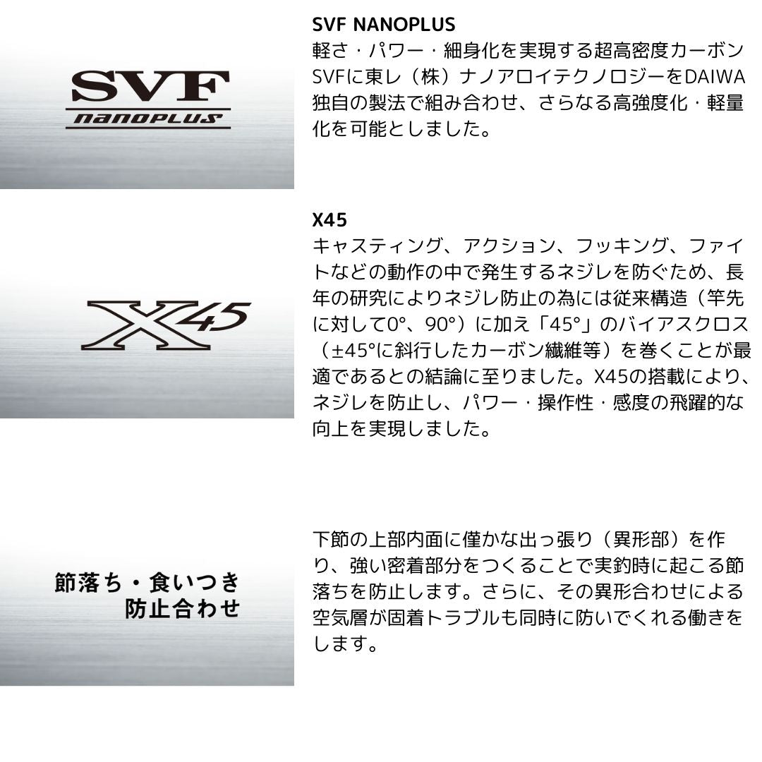 取り込みの精度を高める軽さと張り、パワーを備えたNEW『TOURNAMENT ISO 玉の柄』が誕生。超高密度、高強度のカーボンテクノロジー『SVFナノプラス』の採用とネジレを防ぐ『X45』の相乗効果で、大サラシや強風下においても抜群の操作性を誇り、安定した取り込みを実現。固着防止の新機構採用で勢いよく振り出したとき、大型魚を引き上げるときなど、節が伸び切ってしまいやすいシチュエーションにおいてもトラブルが激減した。下栓の水抜き穴を大口径化し、通気性が向上。振り出しスピードも速くなり、素早く確実に魚を取り込むことが可能。