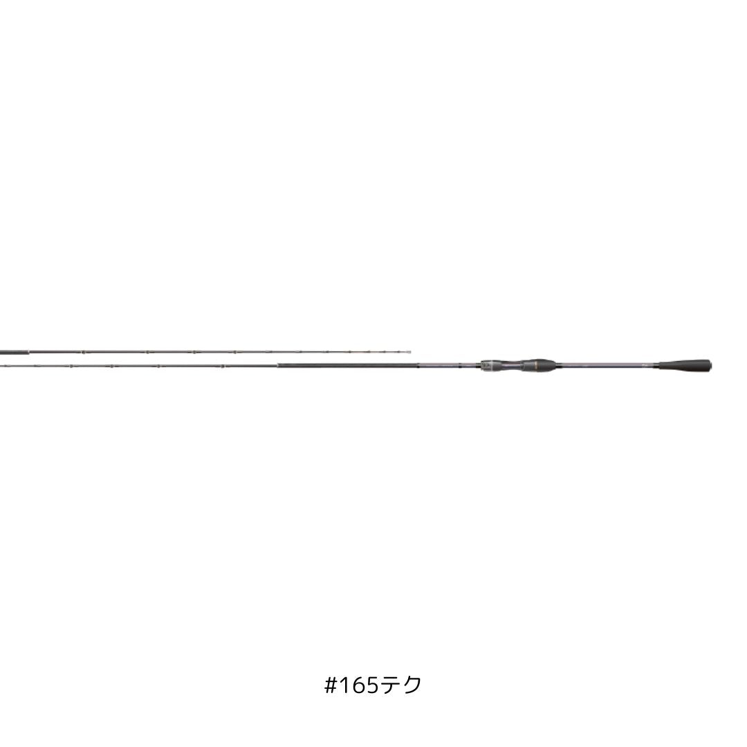 全長(m):1.65 継数:2 仕舞寸法(cm):87 標準自重(g):89 先径/元径(mm):1.0/9.8 錘負荷(号):20~60 カーボン含有率(%):77