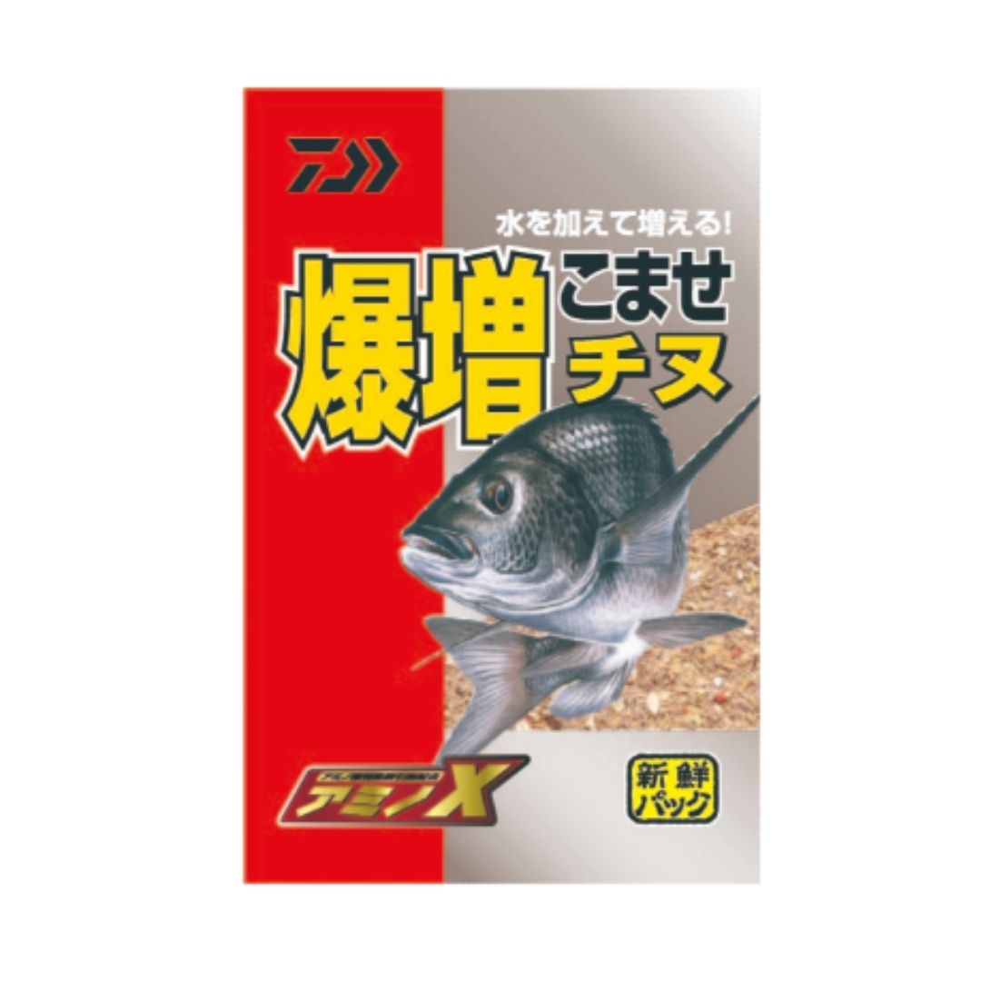 アイテム:アミノX爆増こませチヌ 標準重量(g):1250 入数(個):12 遠投:2 比重:1.5 拡散:5 集魚:2.5 JAN:4550133455612