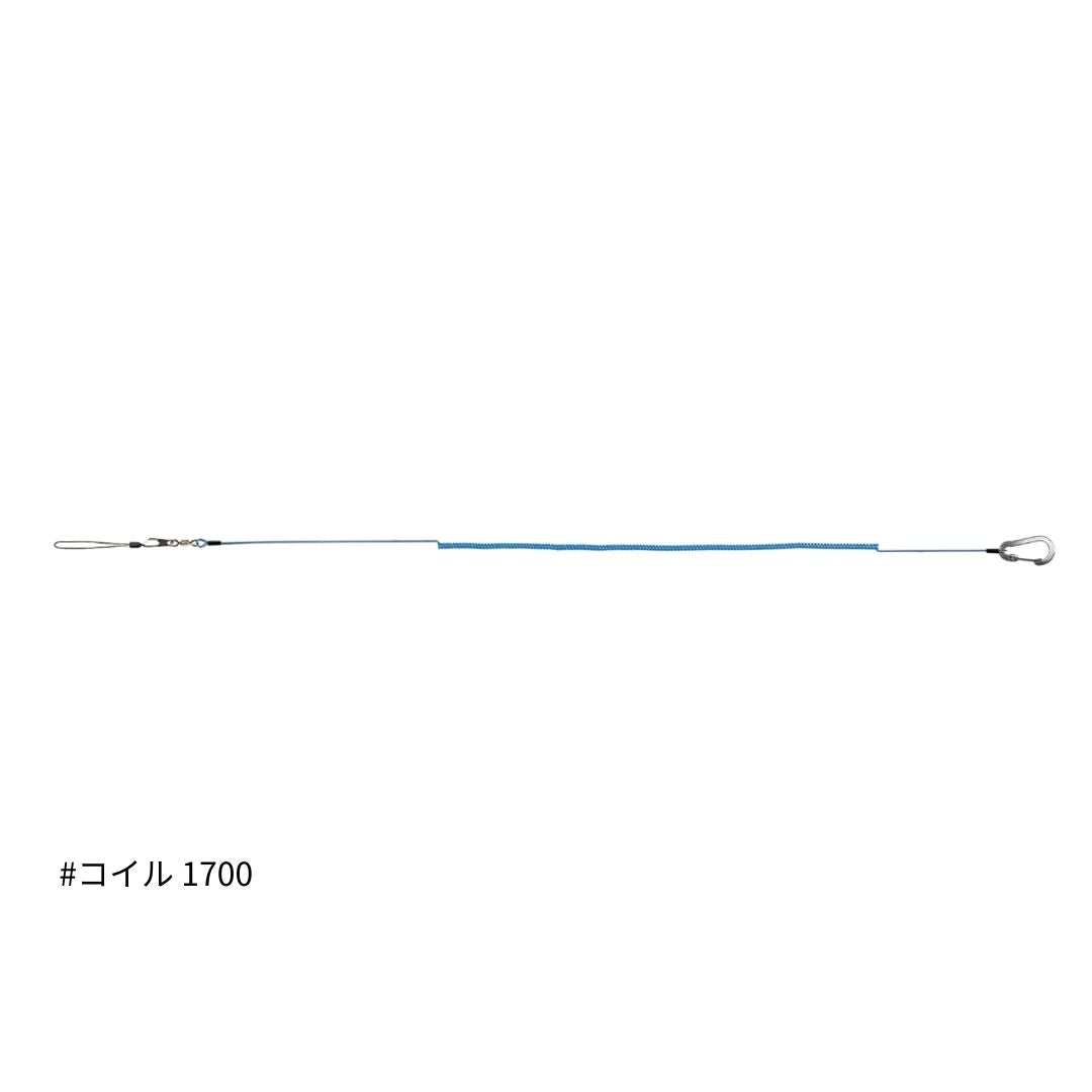 【コイル1700】最大使用全長(㎜):1700 最大強度(kg):15 材質:ウレタン+ポリアミド繊維 ロープ形状:コイルロープ 接続部(固定側):アルミカラビナ 接続部(タックル側):スナップ・ループコード