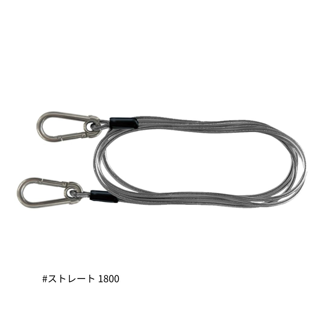 【ストレート1800】最大使用全長(㎜):1800 最大強度(kg):50 材質:ウレタン+ステンレスワイヤー ロープ形状:ストレートロープ 接続部(固定側):SUSリング付きカラビナ 接続部(タックル側):SUSカラビナ