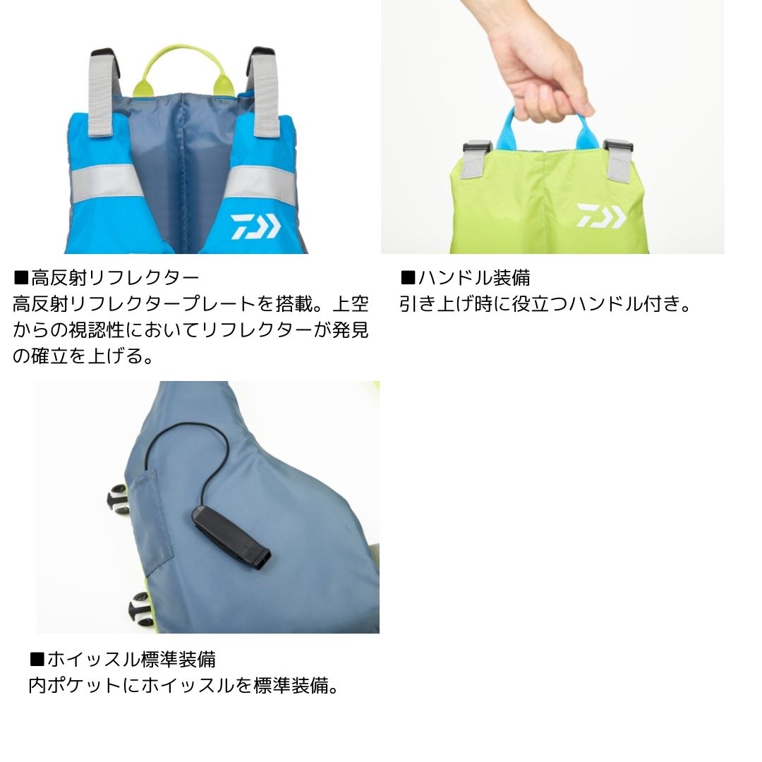 落水時のフローティングベストの脱げ防止用股ベルト標準装備。