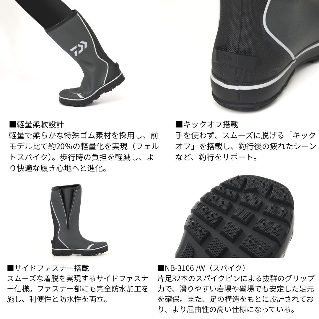 また、サイドファスナー仕様で着脱もスムーズ。ダイワ独自の足型設計により、フィット感・機動性・履き心地をさらに追求。