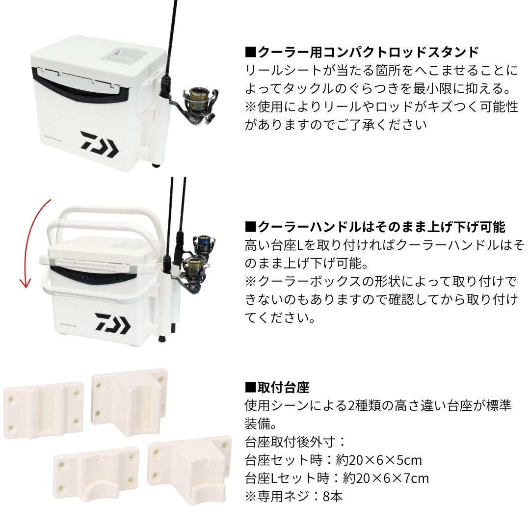 本体(竿立て部)は着脱可能で使用しない時に取り外せばクーラーボックスはコンパクトな状態で収納可能。