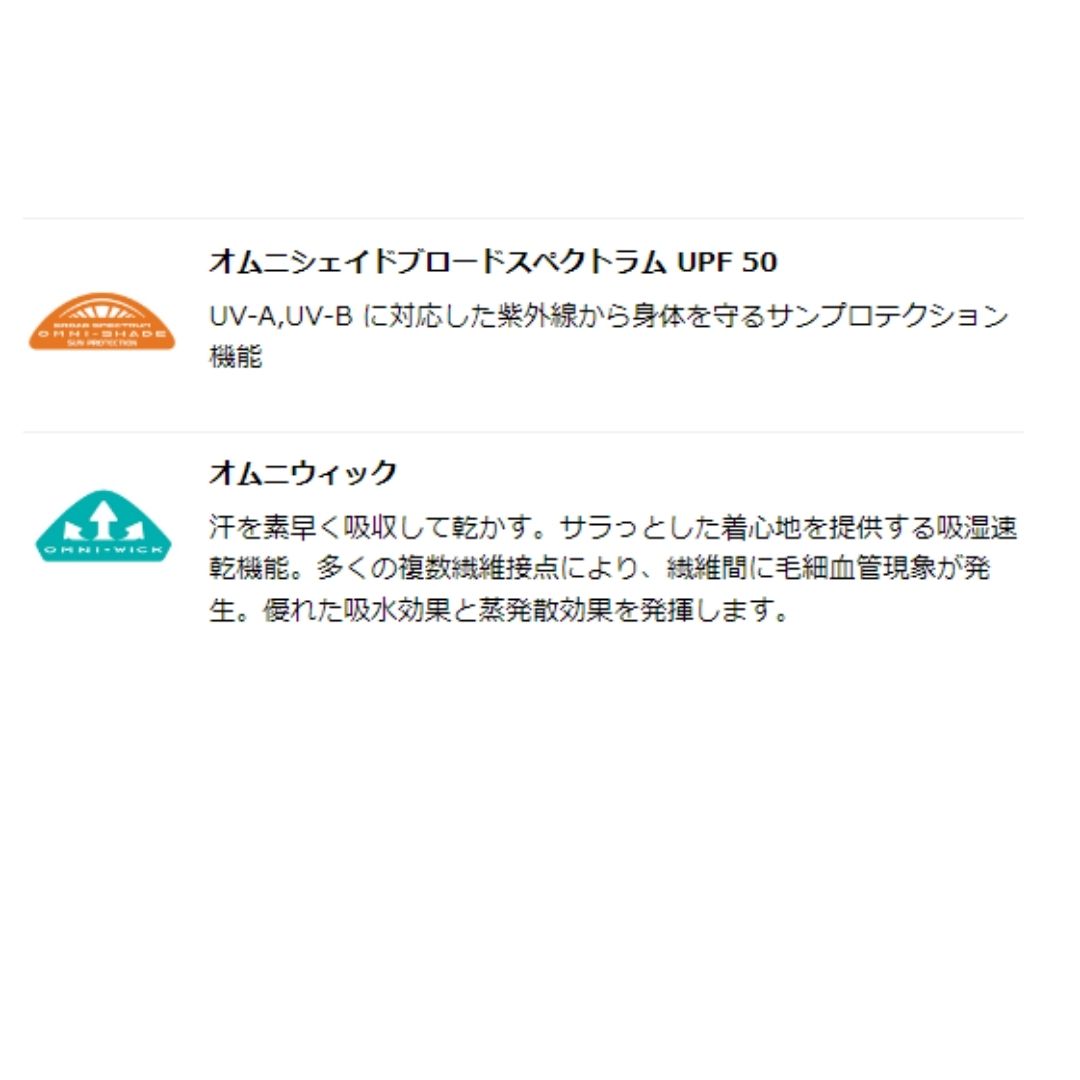 柔らかくてストレッチ性のあるポリエステル100%素材を使用し、UV-A、UV-Bの紫外線からしっかりと肌を守るサンプロテクション機能「オムニシェイドブロードスペクトラム」を採用しているため、日差しの強いも安心です。さらに、汗を素早く吸収して乾かす、吸湿速乾機能「オムニウィック」が、真夏の暑い日もドライな着心地を保ちます。フード付きのロングスリーブに加えて、袖口にはサムホールを採用することで、頭から手の甲までの日焼け防止に役立ちます。ややゆったりとしたインターナショナルフィットで、リラックスした着こなしを楽しむことができます。