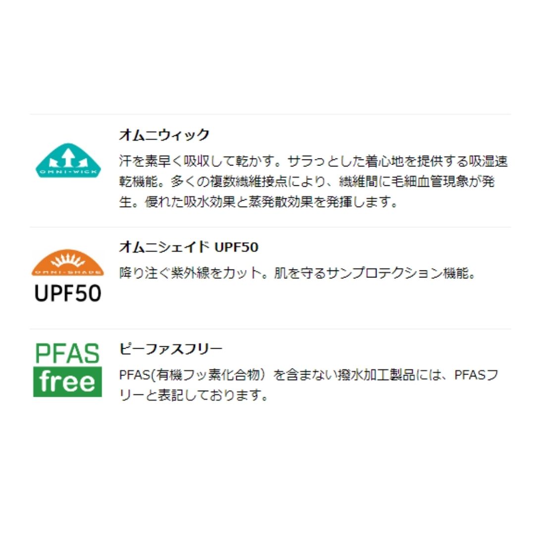 汗をかいてもドライな着心地を保つ、吸湿速乾機能「オムニウィック」に、紫外線をブロックして肌を守るサンプロテクション機能を兼ね備えた夏のアウトドアに嬉しいアイテムです。前立て裏には柄プリントを施し、アクセントをプラス。(カラーによって異なります)アウトドアシーンはもちろん、街着としても活躍します。