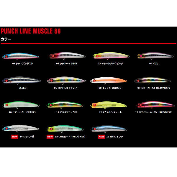 パンチライン80に3gのウェイトアップチューンを施し、より飛距離・遊泳力を高めたモデル。強風下における橋脚絡みの吹き返し、風が抜ける干潟などでのキャスタビリティーを追求すると同時に、風に煽られにくい事でアキュラシーも向上。不利な条件でもピンポイントの釣りが展開できる。また、下げ潮時の速い流れにも浮き上がり難く、レンジキープ力に優れているためにテンポの良い釣りを行う事が可能。