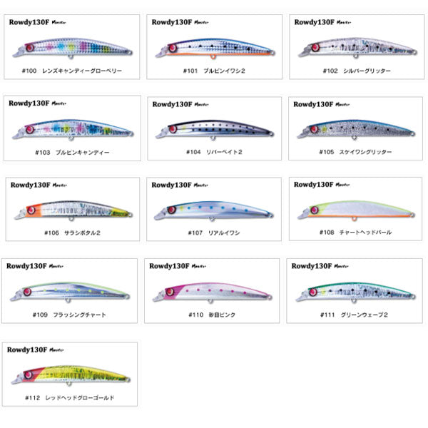 外洋のヒラスズキ、サーフからのヒラメ、河川のシーバスゲーム等で大活躍してきたRowdy130Fであるが、3フックシステムでの強度不足により太刀打ち出来ないモンスターとの遭遇も多くあった。更なるモンスターを目指す為、#3〜#1の大型フックの2フックシステムを前提に最新の技術で新規に金型を作成。内部には1.2mm強化エイト環を装備。更なる大物を目指した渾身の設計である。使用するシチュエーションを考え、Rowdy130Fに比べ、レンジキープ力を更に高め、より強い流れの中でも安定させる事に成功。大物思考アングラーに贈る井上友樹の渾身作。