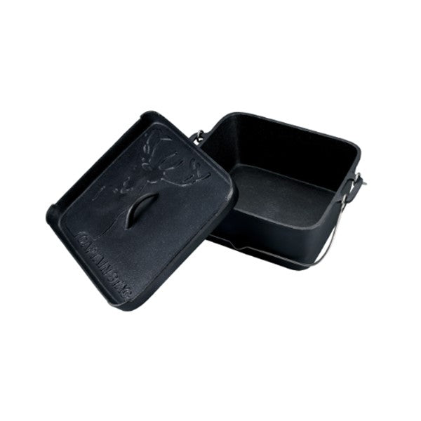角を効率よく使える角型ダッチオーブン。焚き火・炭火で、こだわりのアウトドア料理ができます。
