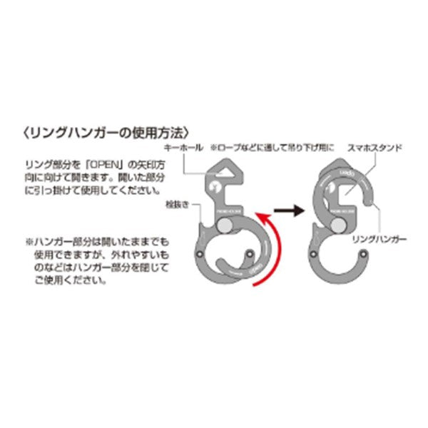 機能/スマホスタンド、栓抜き、キーホール、吊り下げ可能(※吊り下げ使用orリングハンガー使用)、触れたくないものを押せる。