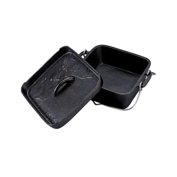 角を効率よく使える角型ダッチオーブン。焚き火・炭火で、こだわりのアウトドア料理ができます。