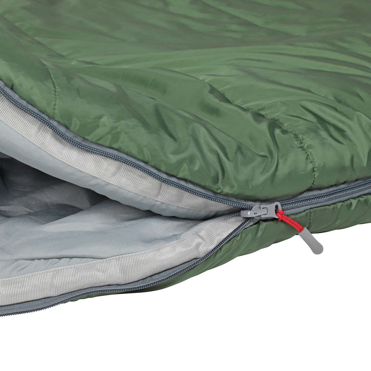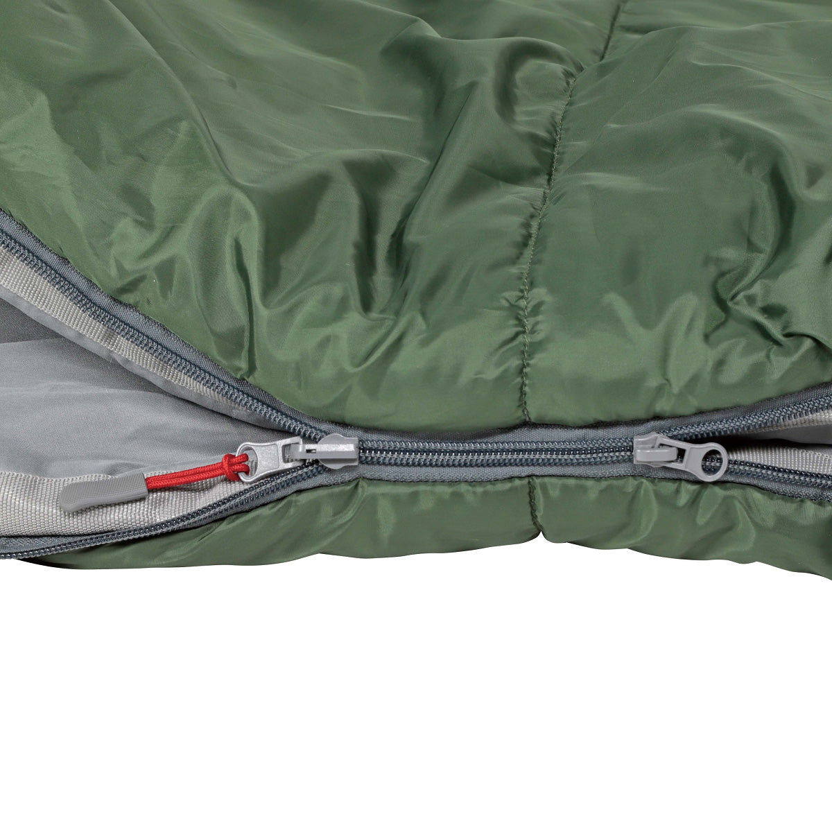 ダブルファスナーで上下から開閉。少し暑い時は足元のファスナーを開ければ温度調節が可能。