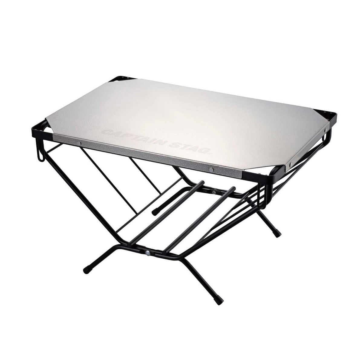 薪を地面の湿気から守りながら、テーブルとしても使用可能。