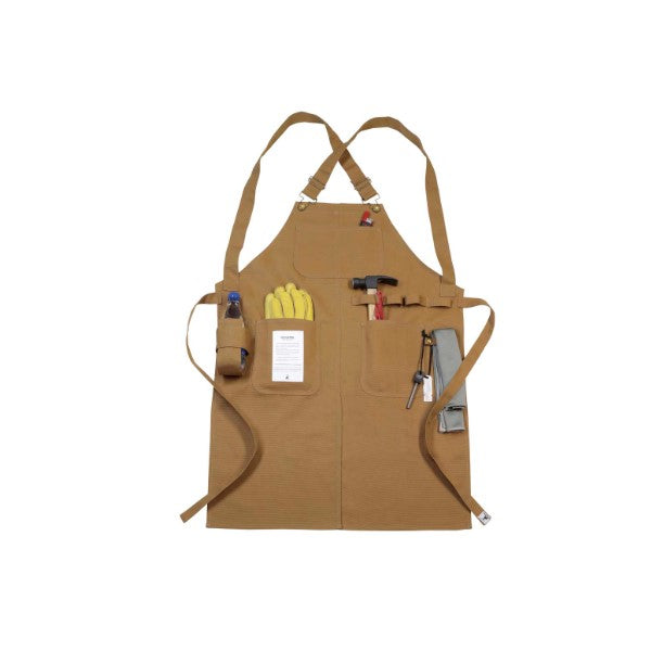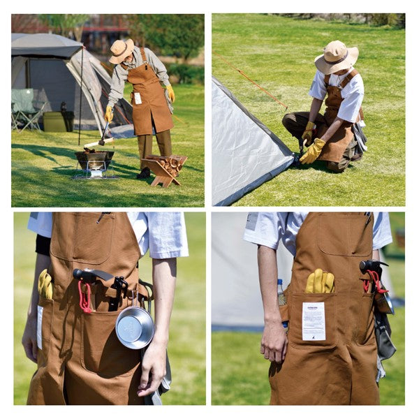 焚き火や料理に適した、難燃生地を使用したエプロン。