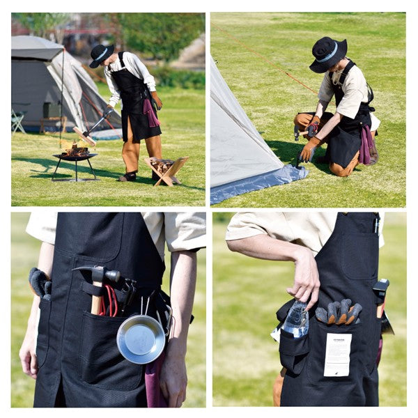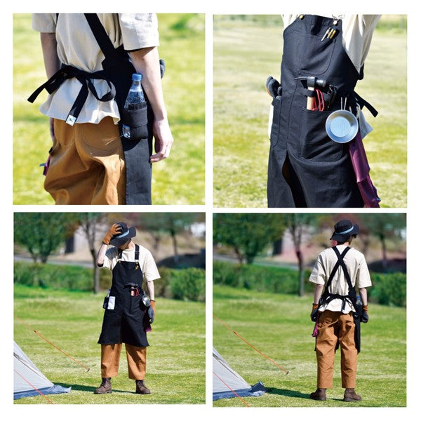 焚き火や料理に適した、難燃生地を使用したエプロン。