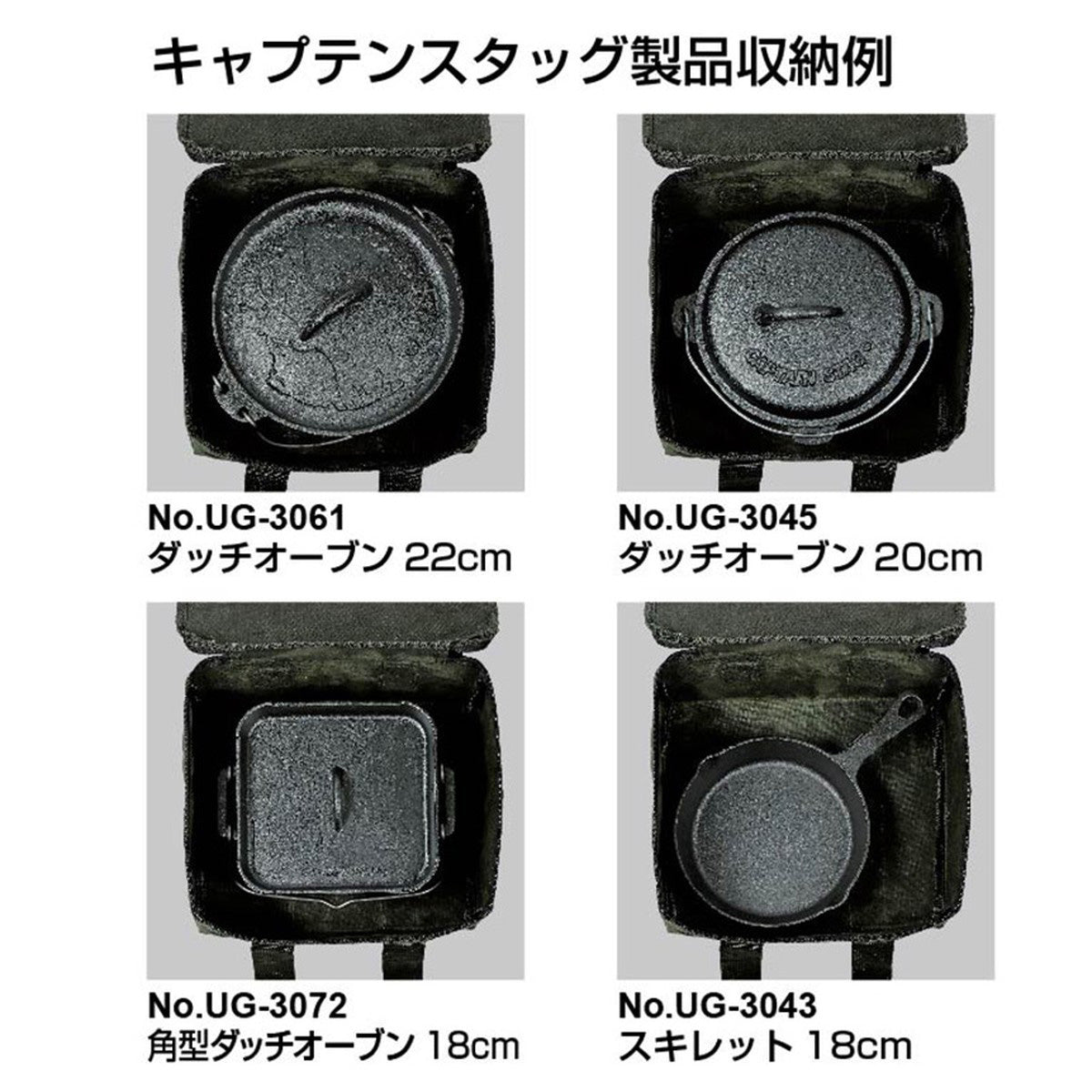 角型なのでダッチオーブンだけでなくスキレットやキャンプ小物も収納できます。