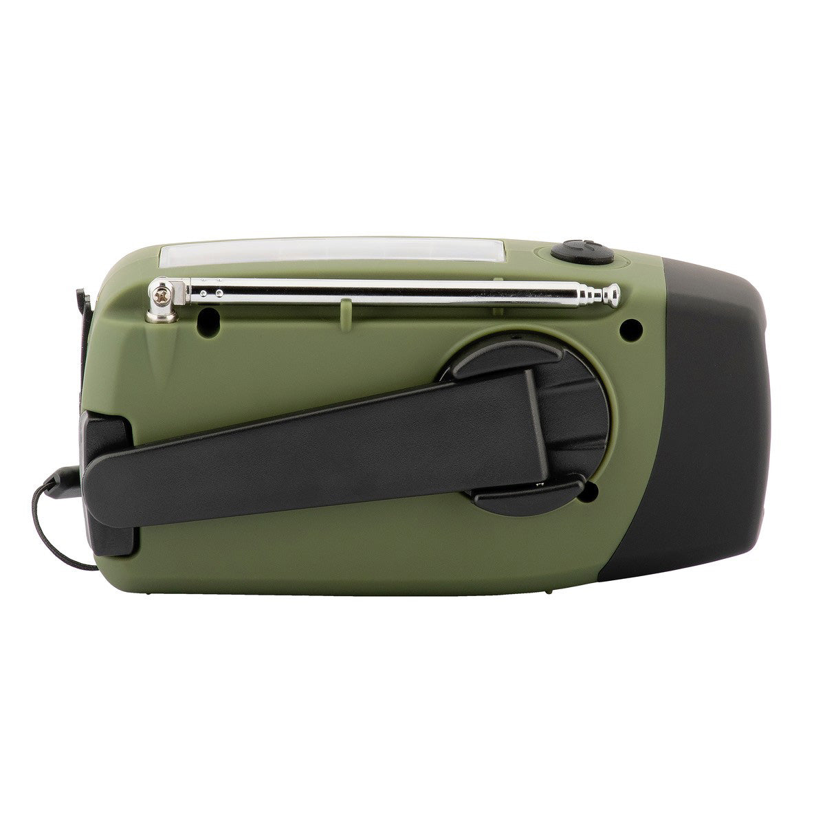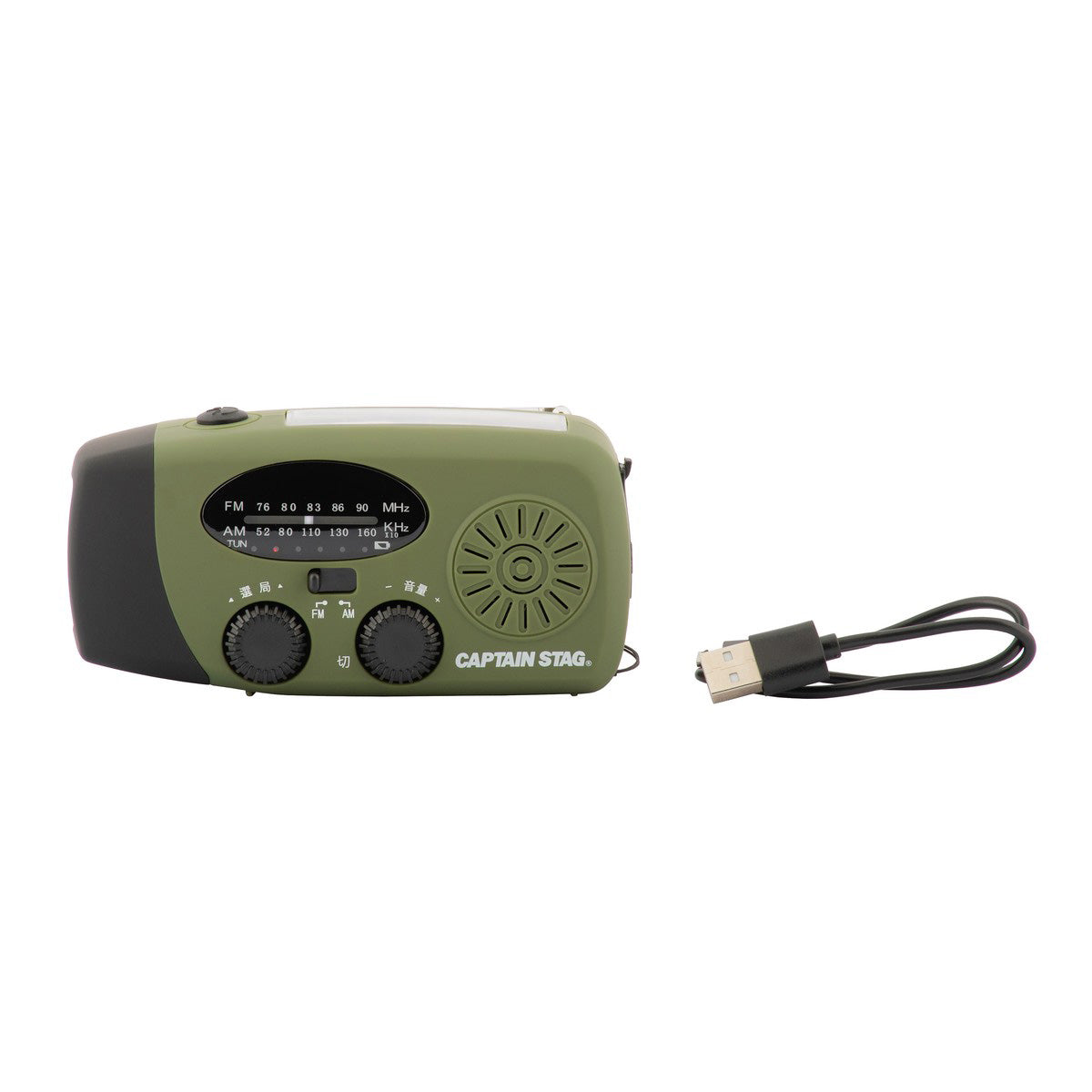ハンドルを手回しすることで発電して充電ができます。ソーラーパネルで太陽光でも充電も可能です。