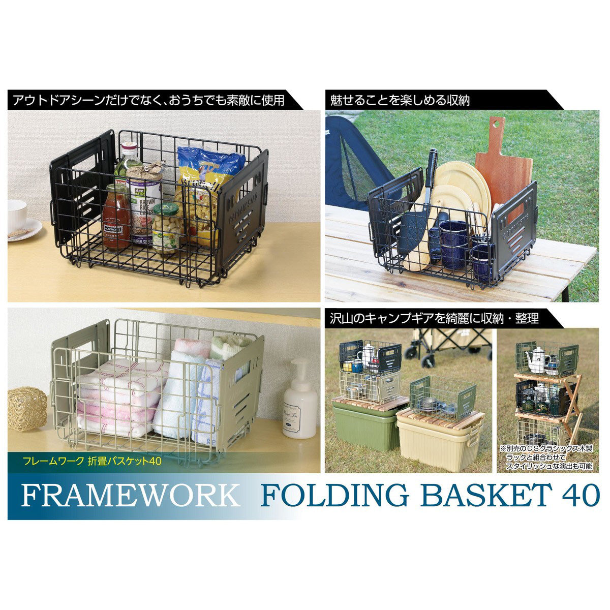 フレームワーク 折畳バスケット40(ブラック) UP-2007