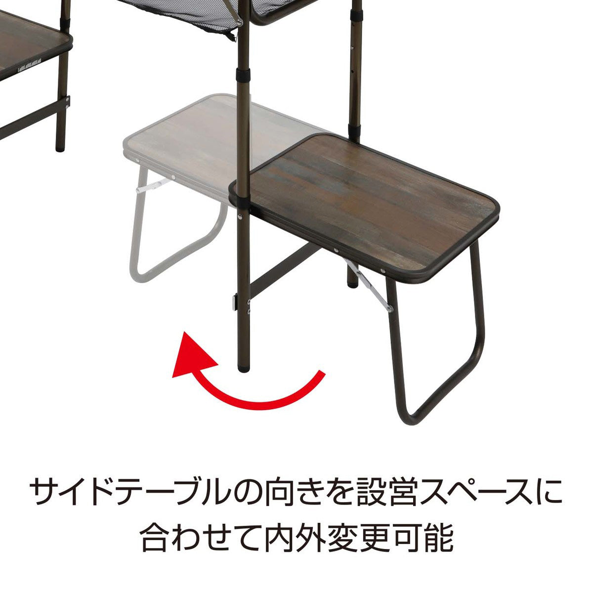 サイドテーブルの向きを設営スペースに合わせて内外変更可能。