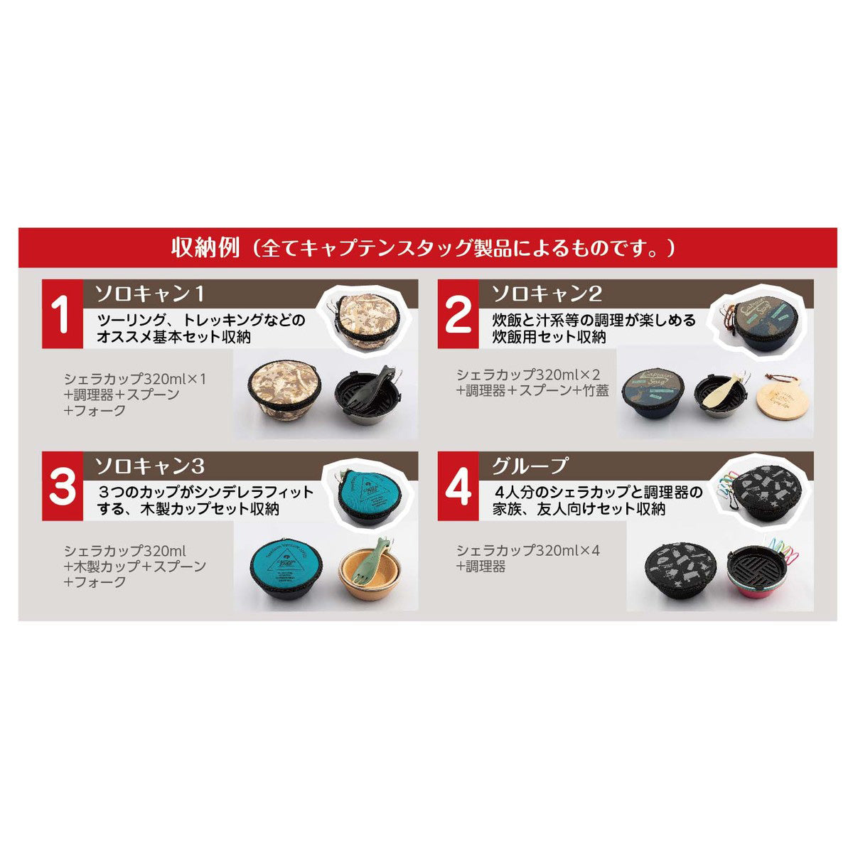 仕様/その他 外径120×高さ45mm、容量320mm程度のシェラカップ4個程度を収納できます。※形状などにより収納できない場合がございます。