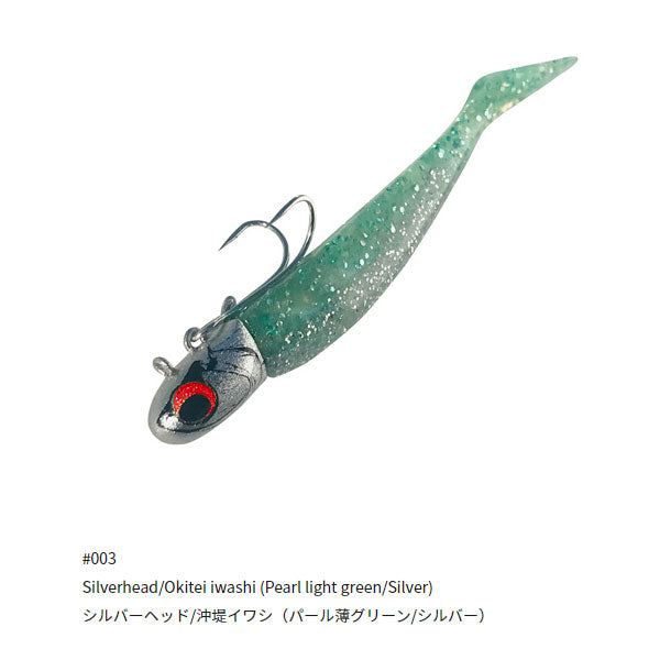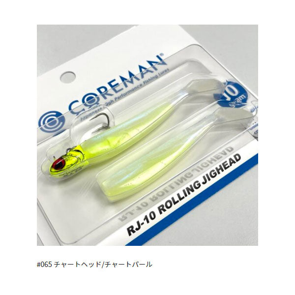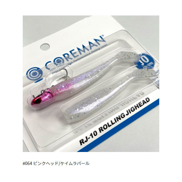 ローリングに特化したジグヘッドルアー!RJローリングジグヘッドの10gモデル!スレたシーバスに効くハイピッチなローリングアクション(ドリルロール)を実現しています。ボディ上部にダブルフックをセットする独自のシステムによって高いフッキング率を誇ります。フックアップ後はダブルフックがピンから外れて遊動となり、フレキシブルに動くことでバラシが大幅に減少します。ワームは高実績で信頼のCA-02アルカリシャッド。そのセットはストレートキーパーなので差し替えがとても簡単です。空気抵抗の少ないコンパクトヘッドによって飛距離も十分。シャローエリアでのデイゲームにて活躍すること間違いないです。特許取得済 PAT. ※ スイムバランスはワームを刺しかえることで調整してください。