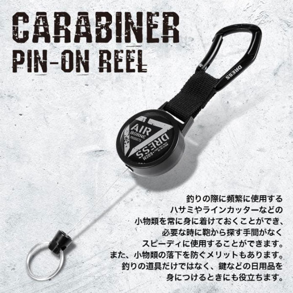 ●カラビナ付きピンオンリール●フィッシングツールの携帯・紛失防止に最適●600mm高強度ステンレスコード採用●ワンタッチ簡単取付け 釣りの際に頻繁に使用するハサミやラインカッターなどの小物類を常に身に着けておくことができ、必要な時に鞄から探す手間がなくスピーディに使用することができます。また、小物類の落下を防ぐメリットもあります。釣りの道具だけではなく、鍵などの日用品を身につけるときにも役立ちます。