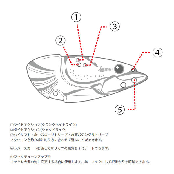 ザリガニをモチーフにしたデザイン。パニックアクションを起こしたザリガニの逃げ惑う動きを演出します。フォール時の姿勢が特徴的で、不規則なスパイラルフォールをして、魚をスレさせません。