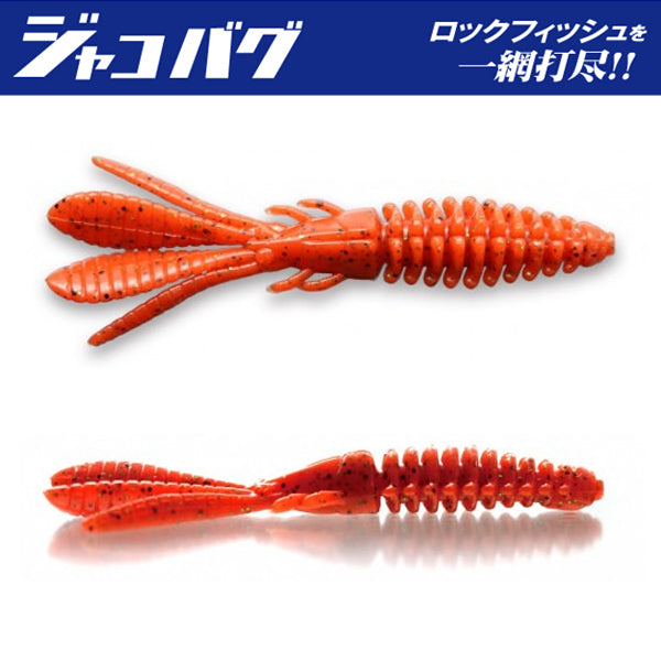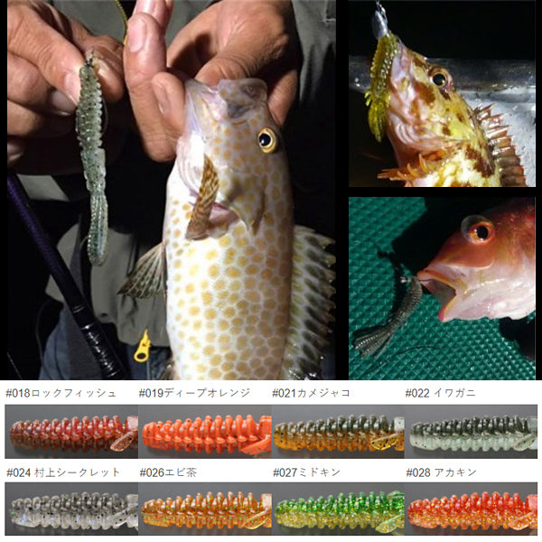 ハタ・カサゴ等ロックフィッシュが常食している甲殻類をイメージさせるデザインです。凹凸のある複雑なボディ表面が水をつかみアピールするとともに、テキサスでは障害物をかわしやすくフッキングしやすい形状になっています。ボリュームの異なる触角は各々が違う波動を発します。頭部についた4本の脚は、フォール時に水を噛みながら極小バイブレーションで魚を誘います。
