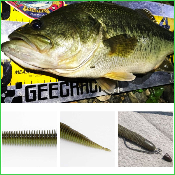 サイズは大きめのボディー8インチと追加サイズで発売となった5.8インチの2サイズ、ボディー全体がリブ形状になっていることにより魚が口にした時、違和感なく奥まで吸い込んでしまう。