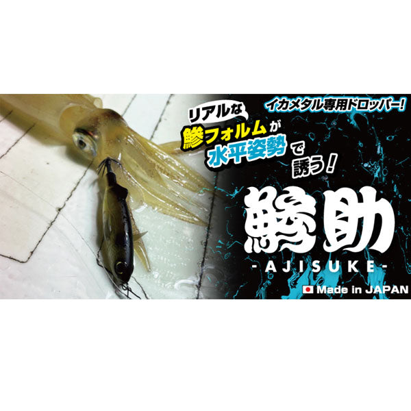 イカメタル専用ドロッパー!リアルな鯵フォルムが水平姿勢で誘う! 見た目はまさに鯵!リアルな鰺を追求したフォルムでイカを誘惑します。ロッドアクション後のポーズ姿勢はイカが抱きやすいとされる水平姿勢を保ち、アタリに備えます。ボディー表面は布巻ではなく、ABS樹脂ボディーとなっております。アジをイミテートしたリアルな仕上がりとなっております。ボディー側面についたヒレは軟質系素材(エラストマー)となっておりカラーをグロー・ブルーグロー・UVと設定しております。視覚的にもアピール!貫通性に優れたフッ素コーティング仕様カンナを採用。ボディーに触れ合わせたイカを逃さない!かかり抜群のフッ素コーティング仕様!