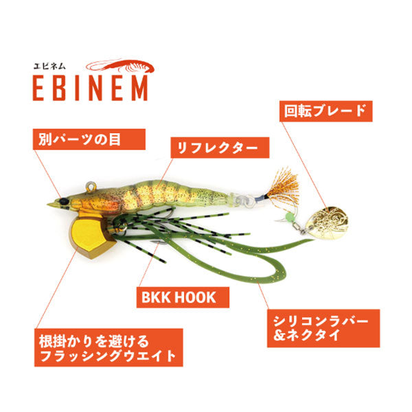 無数の攻略パターン&無数のカスタムで多魚種を狙いのままに攻略 ■ 巻き、リフト&フォール、ボトムバンピング。あらゆるテクニックに対応 ■ 樹脂製リアルエビ&根掛かりを避けるフラッシングウエイト ■ 取り外し可能な抜群の生命感を生むソフトシリコンラバー&ネクタイ ■ 取り外し可能なフラッシングと波動を生むオリジナルブレード ■ 別パーツの目玉、リアルフォルム、内部リフレクター、色別のティンセル ■ フックは刺さりと強度で好評のBKKフックを採用 【10g】沈みが遅いライトウエイト。浅場や岩場、岸壁のヘチなどの攻略に。小河川や湾内、池沼にも。
